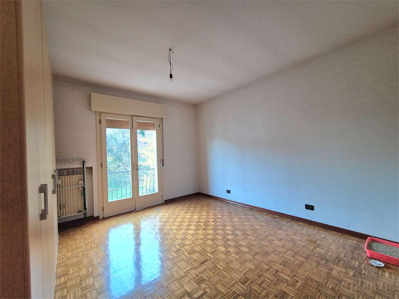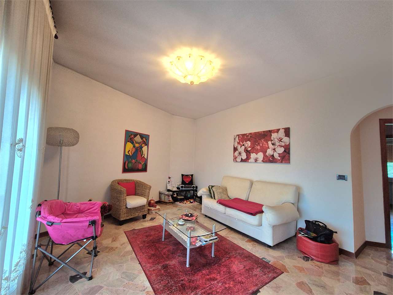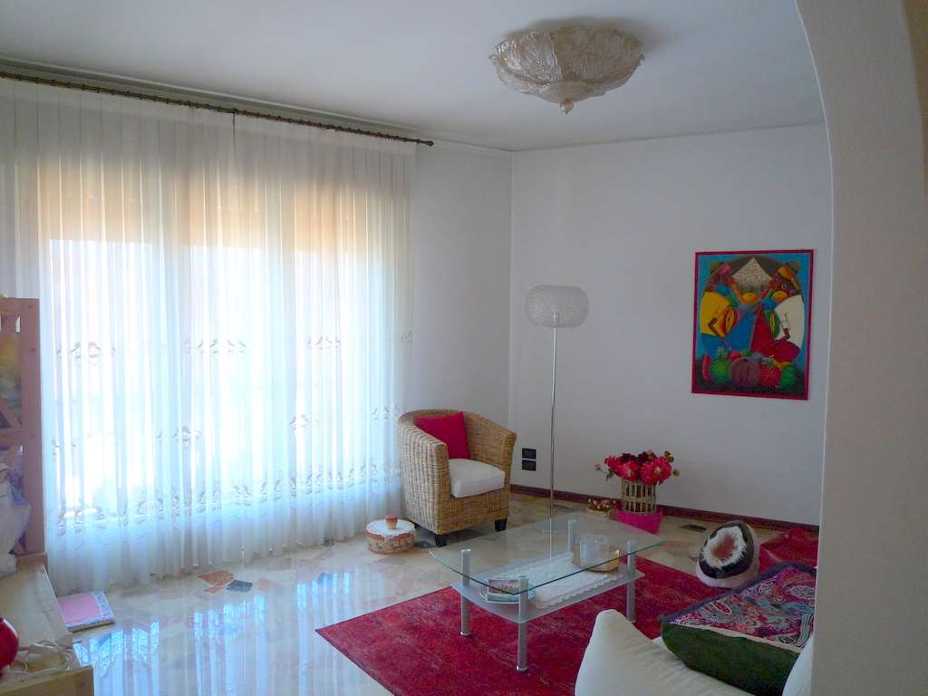 appartamento in zona semicentrale, luminoso, panoramico e ben tenuto, ristrutturato nel tempo, di 108 mq commerciali, al terzo e ultimo piano di palazzina con rampe di scale comode ma senza ascensore; composto di ingresso, cucina abitabile arredata, soggiorno, bagno rifatto, tre camere (due matrimoniali e una singola), due terrazzi, cantina capiente di mq.8 e posto auto al piano terra di circa 10 mq.. Riscaldamento centralizzato con conta chilocalorie